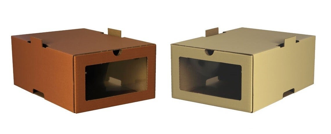 Handige Schoenendoos PARIS LICHTBRUIN is gemaakt van golfkarton en is voorzien van een handig zicht- en klapvenster. Het model PARIS GRIJS is stapelbaar met alle andere kleuren van model PARIS. Als u 2 dozen PARIS naast elkaar plaats dan kan daar bovenop ook een L-Laarzendoos NICE geplaatst worden. Indien u grotere schoenen wenst te organiseren dan maat 43 dan verwijzen wij u door naar de XL-Handige Schoenendoos BERLIN (Art.nr. HSD0015) die tot en met maat 47 aankan. Deze doos is een stuk groter en is niet stapelbaar met model PARIS.